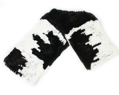 レッキスラビット 編み込み ファー スヌード ネックウォーマー 輪っか状 牛柄 ブラック ホワイト レディース ギフト プレゼント